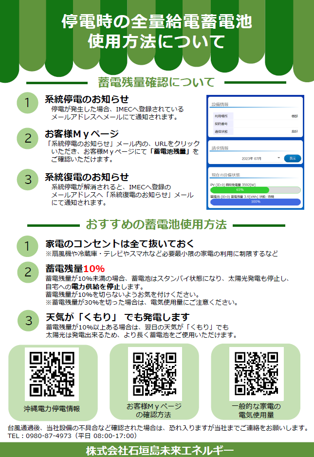 石垣島未来エネルギー TEL:0980-87-4973(平日 8:00-17:00)